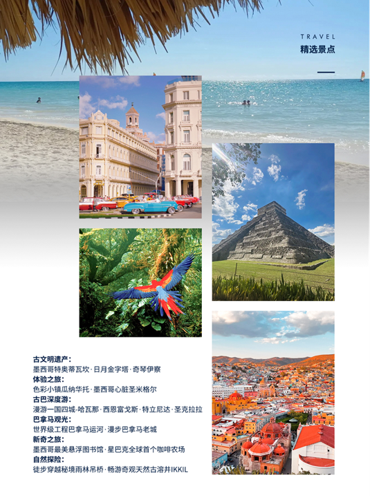 这里孕育了辉煌灿烂的阿兹特克和玛雅文明、令人回味的老城故事色彩热辣迷人的加勒比海、